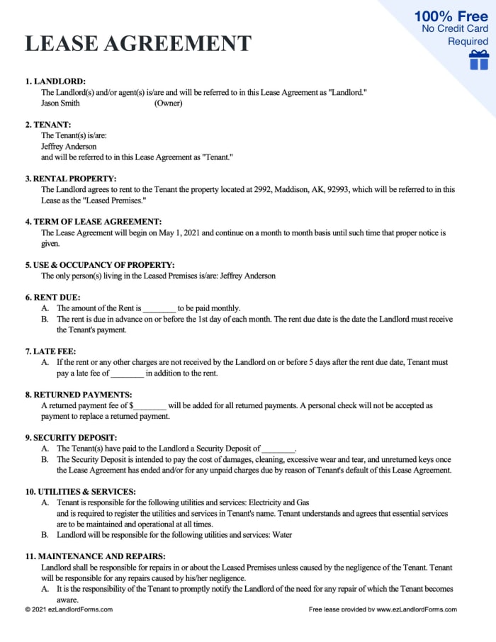 Free Residential Lease Template Download Rental Agreement Sample Pdf